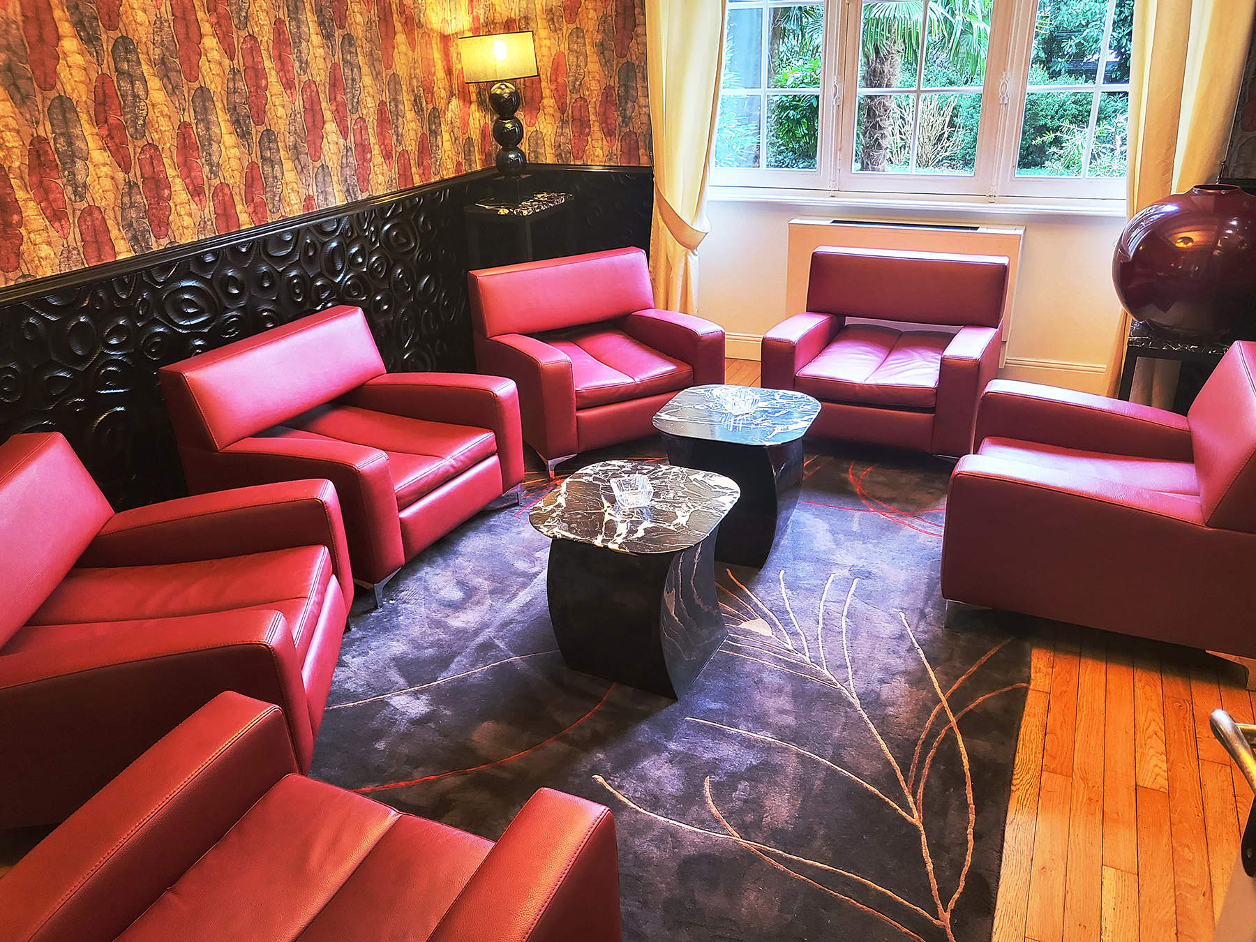 La porte s'ouvre sur une deux salons cosy, pour répondre à vos envies de détente dans des fauteuils très confortables, avant ou après votre repas pour l'apéritif ou le digestif, l'un fumeur, l'autre non.