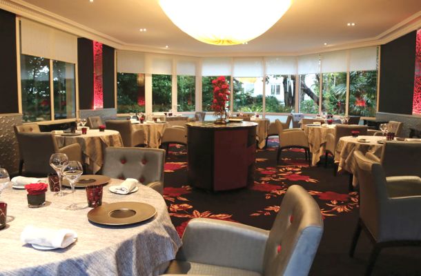 - La salle principale, colorée et chaleureuse, est équipée d'un mobilier confortable et de larges baies vitrées donnant sur le jardin (28 couverts, jusqu'à 50 en groupe). Lorsque le climat le permet, le service est assuré en terrasse, au plus près de la végetation et du chant des oiseaux...